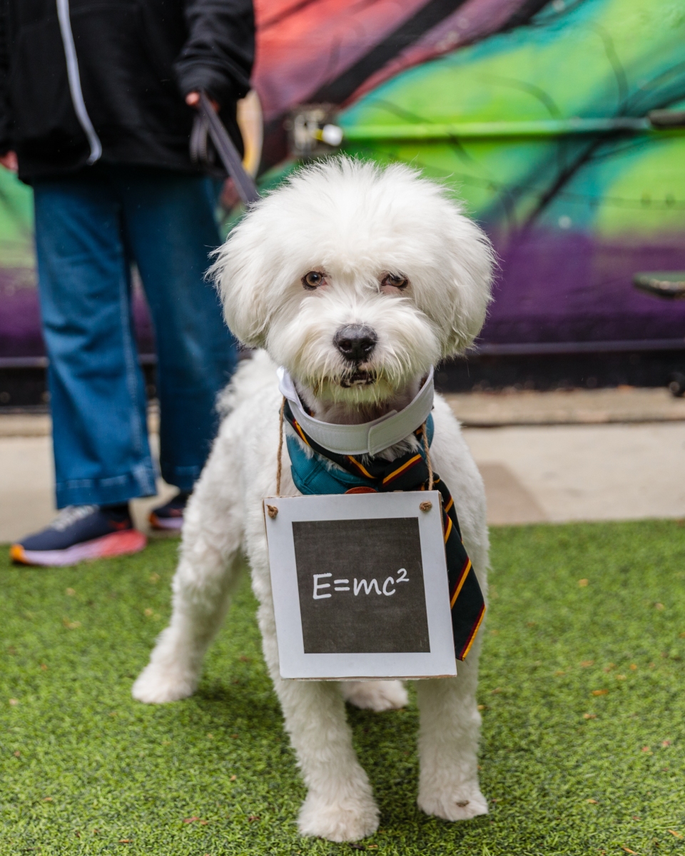 Best Dog Costume: White fluffy dog with wiley hair dressed as Einstein.